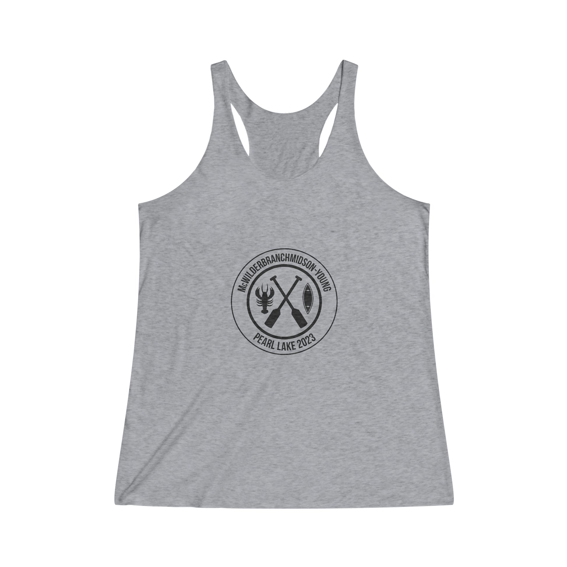 Women's tri-blend racerback tank for the McWilderbranchmidson-Young Pearl Lake 2023 camping trip.